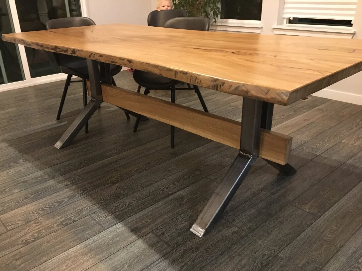 Willow dinning table with mid-century steel industrial legs