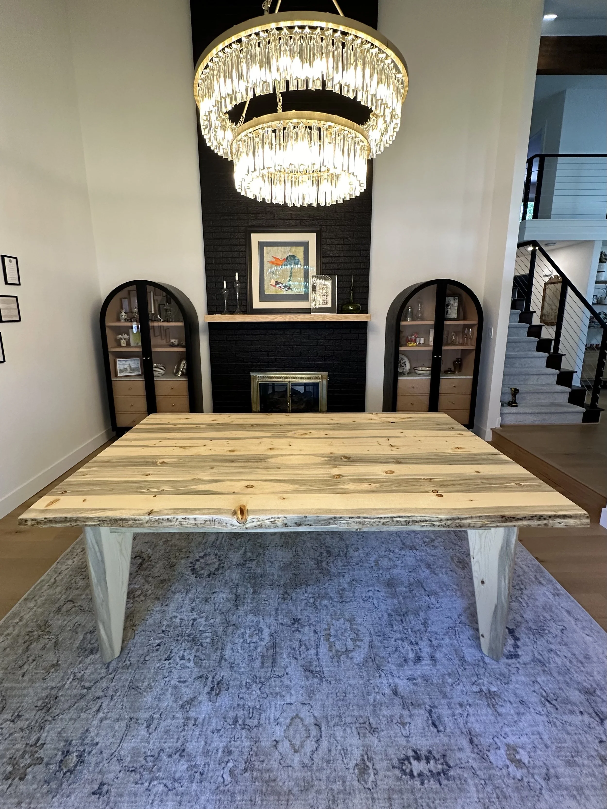 All of our dining tables are created with reclaimed Colorado wood and hand made in Colorado. We feel the extreme environment that the trees grow in makes the wood more stable in dry conditions while also adding additional character. The wood is the hero of these dining pieces. Please contact us to see what species of woods are currently available.