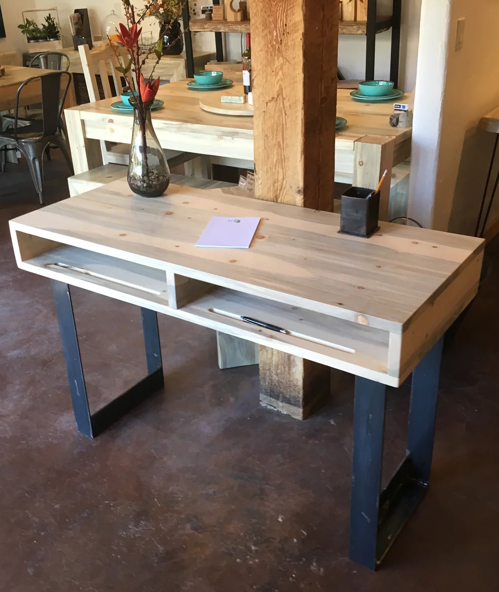 Kill Blue Stain Pine Contemporary Desk with steel legs